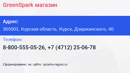 GreenSpark, магазин по адресу 305001, Курская область, Курск, Дзержинского, 40 в дальнейшем Организация, размещена в следующих категориях: