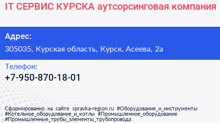 IT СЕРВИС КУРСКА, аутсорсинговая компания по адресу 305035, Курская область, Курск, Асеева, 2а в дальнейшем Организация, размещена в следующих категориях: