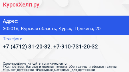 КурскХелп.ру по адресу 305016, Курская область, Курск, Щепкина, 20 в дальнейшем Организация, размещена в следующих категориях: