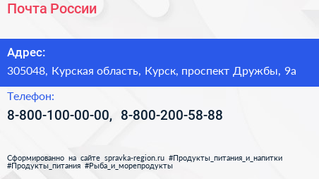 Почта России по адресу 305048, Курская область, Курск, проспект Дружбы, 9а в дальнейшем Организация, размещена в следующих категориях: