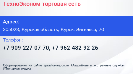 ТехноЭконом, торговая сеть по адресу 305023, Курская область, Курск, Энгельса, 70 в дальнейшем Организация, размещена в следующих категориях: