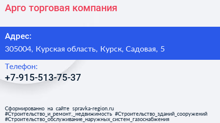 Арго, торговая компания по адресу 305004, Курская область, Курск, Садовая, 5 в дальнейшем Организация, размещена в следующих категориях: