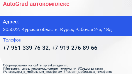 AutoGrad, автокомплекс по адресу 305022, Курская область, Курск, Рабочая 2-я, 18д в дальнейшем Организация, размещена в следующих категориях: