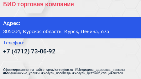 БИО, торговая компания по адресу 305004, Курская область, Курск, Ленина, 67а в дальнейшем Организация, размещена в следующих категориях: