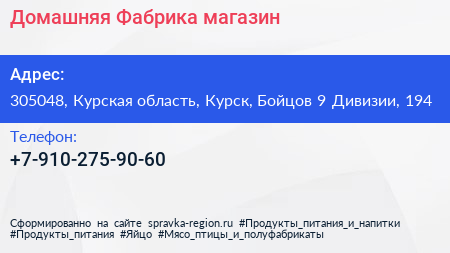 Домашняя Фабрика, магазин по адресу 305048, Курская область, Курск, Бойцов 9 Дивизии, 194 в дальнейшем Организация, размещена в следующих категориях: