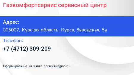 Газкомфортсервис, сервисный центр по адресу 305007, Курская область, Курск, Заводская, 5а в дальнейшем Организация, размещена в следующих категориях: