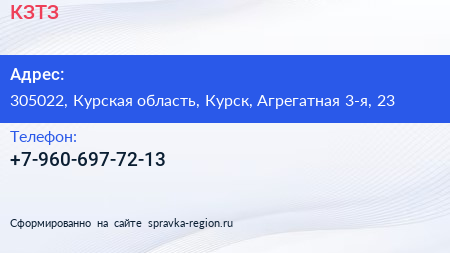 КЗТЗ по адресу 305022, Курская область, Курск, Агрегатная 3-я, 23 в дальнейшем Организация, размещена в следующих категориях: