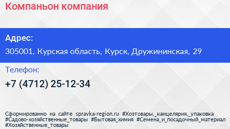 Компаньон, компания по адресу 305001, Курская область, Курск, Дружининская, 29 в дальнейшем Организация, размещена в следующих категориях: