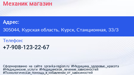 Механик, магазин по адресу 305044, Курская область, Курск, Станционная, 33/3 в дальнейшем Организация, размещена в следующих категориях: