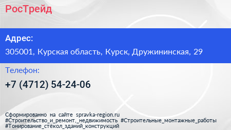 РосТрейд по адресу 305001, Курская область, Курск, Дружининская, 29 в дальнейшем Организация, размещена в следующих категориях: