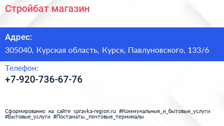 Стройбат, магазин по адресу 305040, Курская область, Курск, Павлуновского, 133/6 в дальнейшем Организация, размещена в следующих категориях: