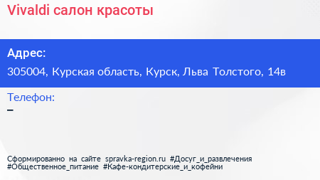 Vivaldi, салон красоты по адресу 305004, Курская область, Курск, Льва Толстого, 14в в дальнейшем Организация, размещена в следующих категориях: