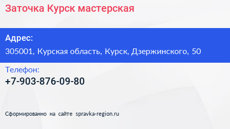 Заточка Курск, мастерская по адресу 305001, Курская область, Курск, Дзержинского, 50 в дальнейшем Организация, размещена в следующих категориях: