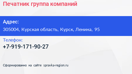 Печатник, группа компаний по адресу 305004, Курская область, Курск, Ленина, 95 в дальнейшем Организация, размещена в следующих категориях: