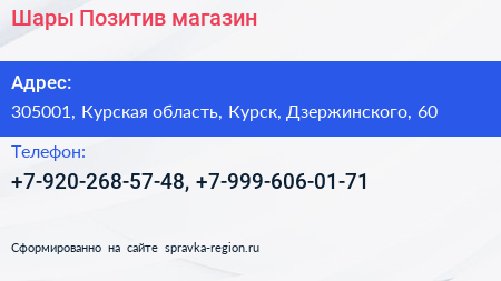 Шары Позитив, магазин по адресу 305001, Курская область, Курск, Дзержинского, 60 в дальнейшем Организация, размещена в следующих категориях: