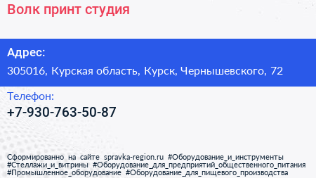 Волк, принт-студия по адресу 305016, Курская область, Курск, Чернышевского, 72 в дальнейшем Организация, размещена в следующих категориях: