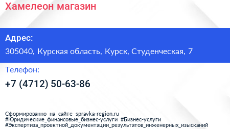 Хамелеон, магазин по адресу 305040, Курская область, Курск, Студенческая, 7 в дальнейшем Организация, размещена в следующих категориях:
