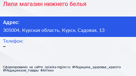 Лили, магазин нижнего белья по адресу 305004, Курская область, Курск, Садовая, 13 в дальнейшем Организация, размещена в следующих категориях: