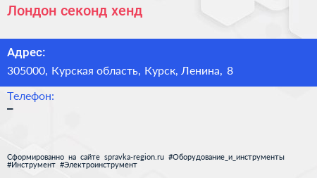 Лондон, секонд-хенд по адресу 305000, Курская область, Курск, Ленина, 8 в дальнейшем Организация, размещена в следующих категориях: