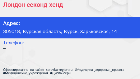 Лондон, секонд-хенд по адресу 305018, Курская область, Курск, Харьковская, 14 в дальнейшем Организация, размещена в следующих категориях: