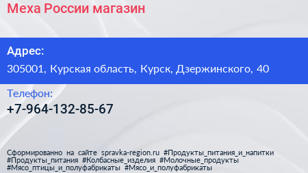 Меха России, магазин по адресу 305001, Курская область, Курск, Дзержинского, 40 в дальнейшем Организация, размещена в следующих категориях: