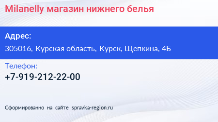 Milanelly, магазин нижнего белья по адресу 305016, Курская область, Курск, Щепкина, 4Б в дальнейшем Организация, размещена в следующих категориях: