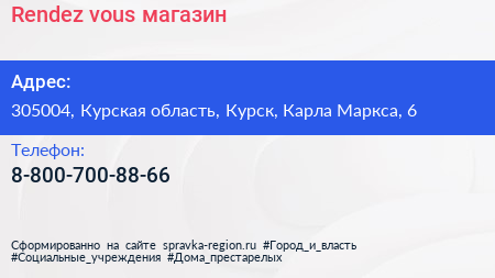 Rendez-vous, магазин по адресу 305004, Курская область, Курск, Карла Маркса, 6 в дальнейшем Организация, размещена в следующих категориях:
