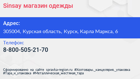 Sinsay, магазин одежды по адресу 305004, Курская область, Курск, Карла Маркса, 6 в дальнейшем Организация, размещена в следующих категориях: