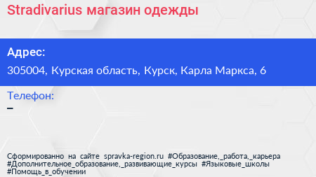 Stradivarius, магазин одежды по адресу 305004, Курская область, Курск, Карла Маркса, 6 в дальнейшем Организация, размещена в следующих категориях: