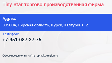 Tiny Star, торгово-производственная фирма по адресу 305004, Курская область, Курск, Халтурина, 2 в дальнейшем Организация, размещена в следующих категориях: