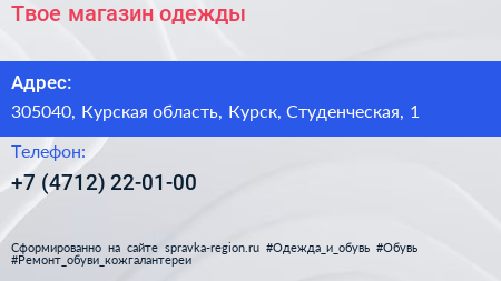 Твое, магазин одежды по адресу 305040, Курская область, Курск, Студенческая, 1 в дальнейшем Организация, размещена в следующих категориях: