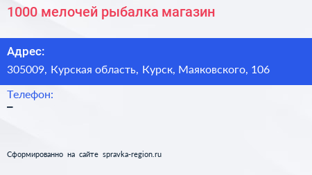 1000 мелочей+рыбалка, магазин по адресу 305009, Курская область, Курск, Маяковского, 106 в дальнейшем Организация, размещена в следующих категориях: