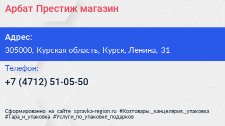 Арбат-Престиж, магазин по адресу 305000, Курская область, Курск, Ленина, 31 в дальнейшем Организация, размещена в следующих категориях: