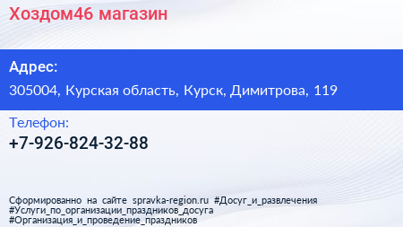 Хоздом46, магазин по адресу 305004, Курская область, Курск, Димитрова, 119 в дальнейшем Организация, размещена в следующих категориях: