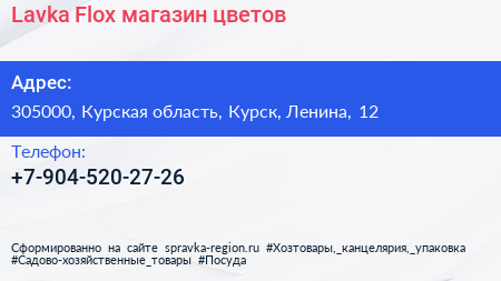 Lavka Flox, магазин цветов по адресу 305000, Курская область, Курск, Ленина, 12 в дальнейшем Организация, размещена в следующих категориях: