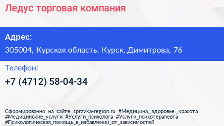 Ледус, торговая компания по адресу 305004, Курская область, Курск, Димитрова, 76 в дальнейшем Организация, размещена в следующих категориях: