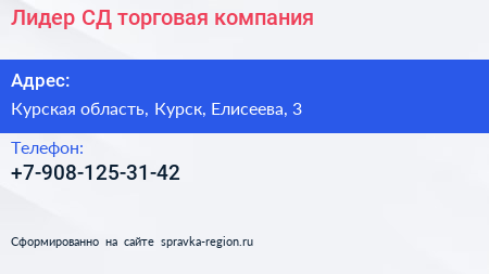 Лидер СД, торговая компания по адресу Курская область, Курск, Елисеева, 3 в дальнейшем Организация, размещена в следующих категориях: