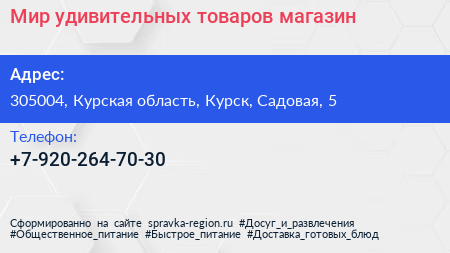 Мир удивительных товаров, магазин по адресу 305004, Курская область, Курск, Садовая, 5 в дальнейшем Организация, размещена в следующих категориях: