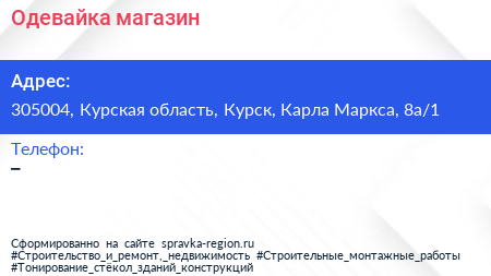 Одевайка, магазин по адресу 305004, Курская область, Курск, Карла Маркса, 8а/1 в дальнейшем Организация, размещена в следующих категориях: