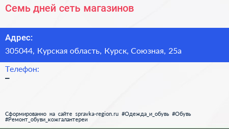 Семь дней, сеть магазинов по адресу 305044, Курская область, Курск, Союзная, 25а в дальнейшем Организация, размещена в следующих категориях:
