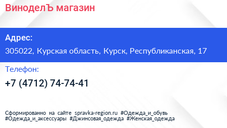ВиноделЪ, магазин по адресу 305022, Курская область, Курск, Республиканская, 17 в дальнейшем Организация, размещена в следующих категориях: