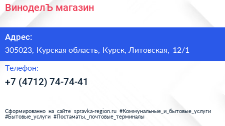 ВиноделЪ, магазин по адресу 305023, Курская область, Курск, Литовская, 12/1 в дальнейшем Организация, размещена в следующих категориях: