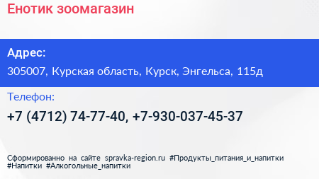 Енотик, зоомагазин по адресу 305007, Курская область, Курск, Энгельса, 115д в дальнейшем Организация, размещена в следующих категориях: