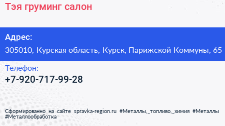 Тэя, груминг-салон по адресу 305010, Курская область, Курск, Парижской Коммуны, 65 в дальнейшем Организация, размещена в следующих категориях: