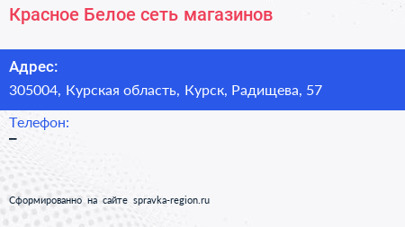 Красное & Белое, сеть магазинов по адресу 305004, Курская область, Курск, Радищева, 57 в дальнейшем Организация, размещена в следующих категориях: