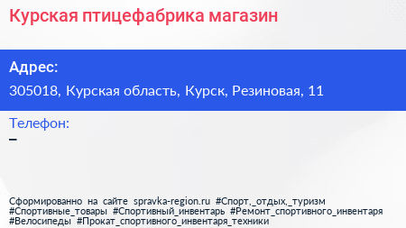 Курская птицефабрика, магазин по адресу 305018, Курская область, Курск, Резиновая, 11 в дальнейшем Организация, размещена в следующих категориях: