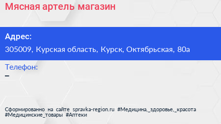 Мясная артель, магазин по адресу 305009, Курская область, Курск, Октябрьская, 80а в дальнейшем Организация, размещена в следующих категориях: