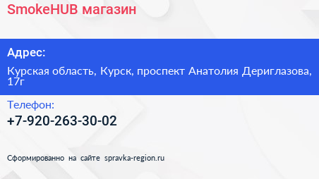SmokeHUB, магазин по адресу Курская область, Курск, проспект Анатолия Дериглазова, 17г в дальнейшем Организация, размещена в следующих категориях: