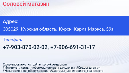 Соловей, магазин по адресу 305029, Курская область, Курск, Карла Маркса, 59а в дальнейшем Организация, размещена в следующих категориях: