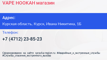 VAPE & HOOKAH, магазин по адресу Курская область, Курск, Ивана Никитина, 1Б в дальнейшем Организация, размещена в следующих категориях: